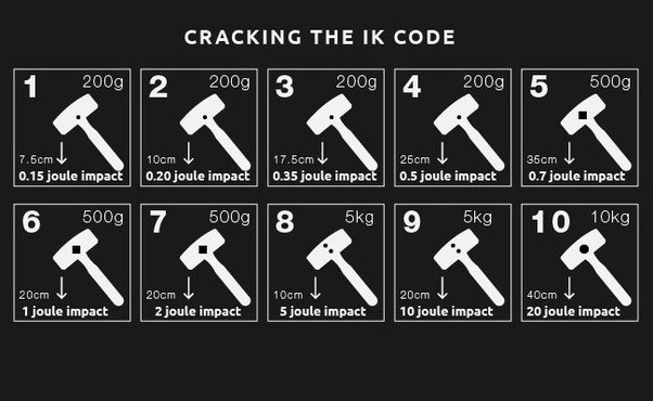 We have created a table showing the differences between the different IK ratings, from IK00 to IK10. Please refer to the table below: